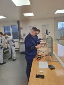 Během dvou týdnů se žáci v dopravním podniku věnovali tramvajím, tramvajovému simulátoru i orientaci v elektrotechnické dokumentaci. Součástí stáže byla také tvorba a čtení elektrických schémat a následná montáž jednotlivých komponent. Významnou část programu tvořila práce na dílnách ve dvojicích s místními žáky, kdy se naši žáci seznámili s hybridními a elektrickými autobusy různých výrobců, jejich diagnostikou, funkčními systémy a postupy oprav. Ověřovali správnou funkci elektronických součástí – například klimatizace, kamerových systémů či osvětlení a učili se pracovat s diagnostickými zařízeními řízenými přes PC. Zároveň získali zkušenosti s bezpečnými postupy při práci s vysokonapěťovými systémy, které jsou nedílnou součástí současných vozidel MHD.