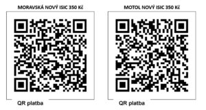 Cena prodloužení činí 250 Kč, cena nové karty ISIC je 350 Kč. Platba je možná prostřednictvím QR kódu.